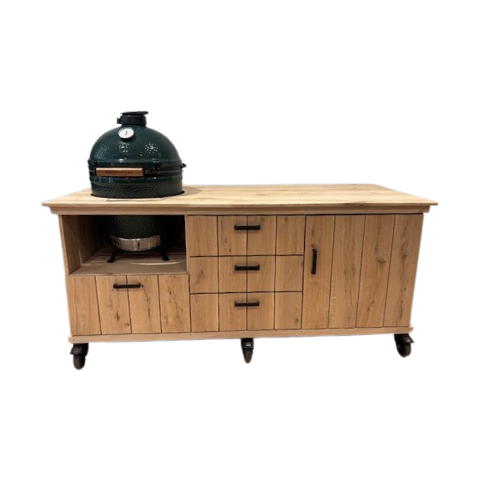 Using the Fraaii Outdoor Kitchens 3D configurator, you can easily put together your own outdoor kitchen. Fraaii Modular outdoor kitchens are available in straight or corner configurations. Fraaii Outdoor Kitchens are made from quality materials intended for outdoor use, such as durable woods that last at least 20 years. The steel frame provides a solid base and has a high-quality coating, so you can enjoy your outdoor kitchen for years to come.