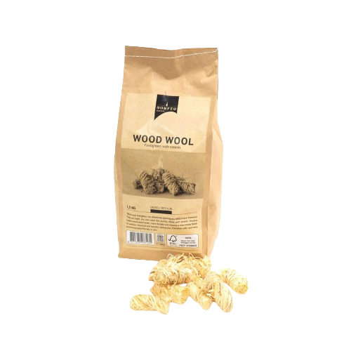 Light your fire naturally and safely with BonFeu Wood Wool Firelighters. This compact 1.5 kg package contains wood shavings impregnated with stearin: the perfect, environmentally friendly way to light a barbecue, open fire or fire pit. Lightweight, dry and easy to ignite. They burn evenly and cleanly, without chemical odours or harmful fumes.