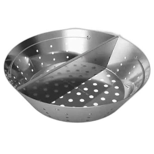 De XL kolenmand bevat een scheidingswand voor het verbranden van houtskool met 2 zones