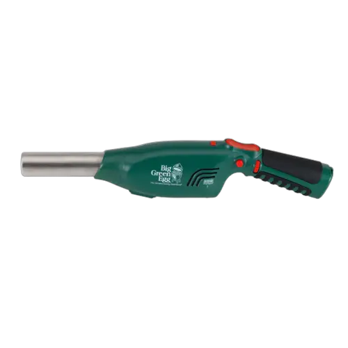 Brandnieuw en al meteen onmisbaar voor elke EGG’er. De Big Green Egg Refillable Butane Charcoal EGGniter is een krachtige mix van een instelbare brander en een blower. Binnen een paar minuten ontsteek en boost je het vuur in de kooltjes. Deze BBQ starter is snel, makkelijk en veilig. Baby, you can light my fire!