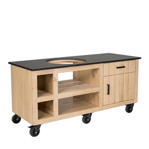 De Buitenkeuken Eiken Classic II met composiet werkblad is een toevoeging voor elke tuin. Deze stijlvolle buitenkeuken biedt ruimte voor een kamado-barbecue en heeft een ruim werkblad. Dankzij de slimme opbergruimtes achter de kastdeuren houd je al je kookgerei georganiseerd en binnen handbereik. Deze buitenkeuken is geschikt voor kamado’s van 15 t/m 22 inch.